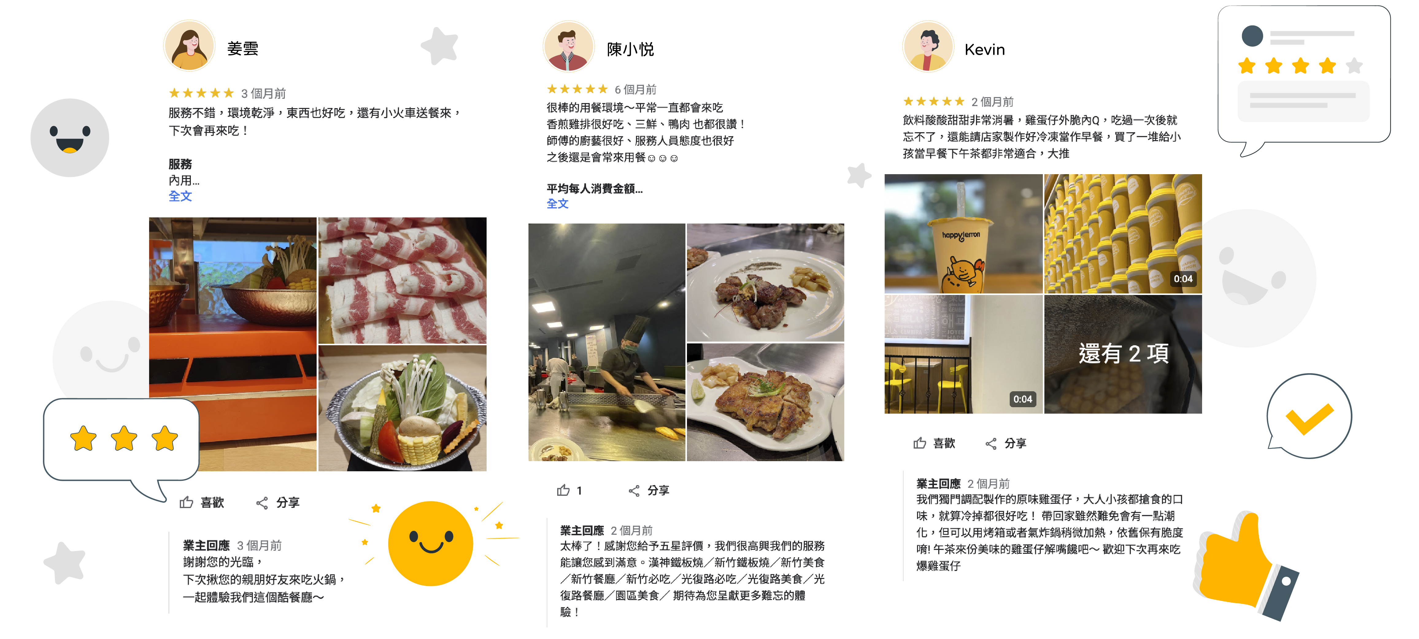 透過我們的服務,細心回應每位顧客,根據評論精準調整服務。建立積極的口碑,讓您的店家充滿好感度。每一次的互動都是一次關懷,讓顧客在每一次光顧中感受到溫暖與尊重。